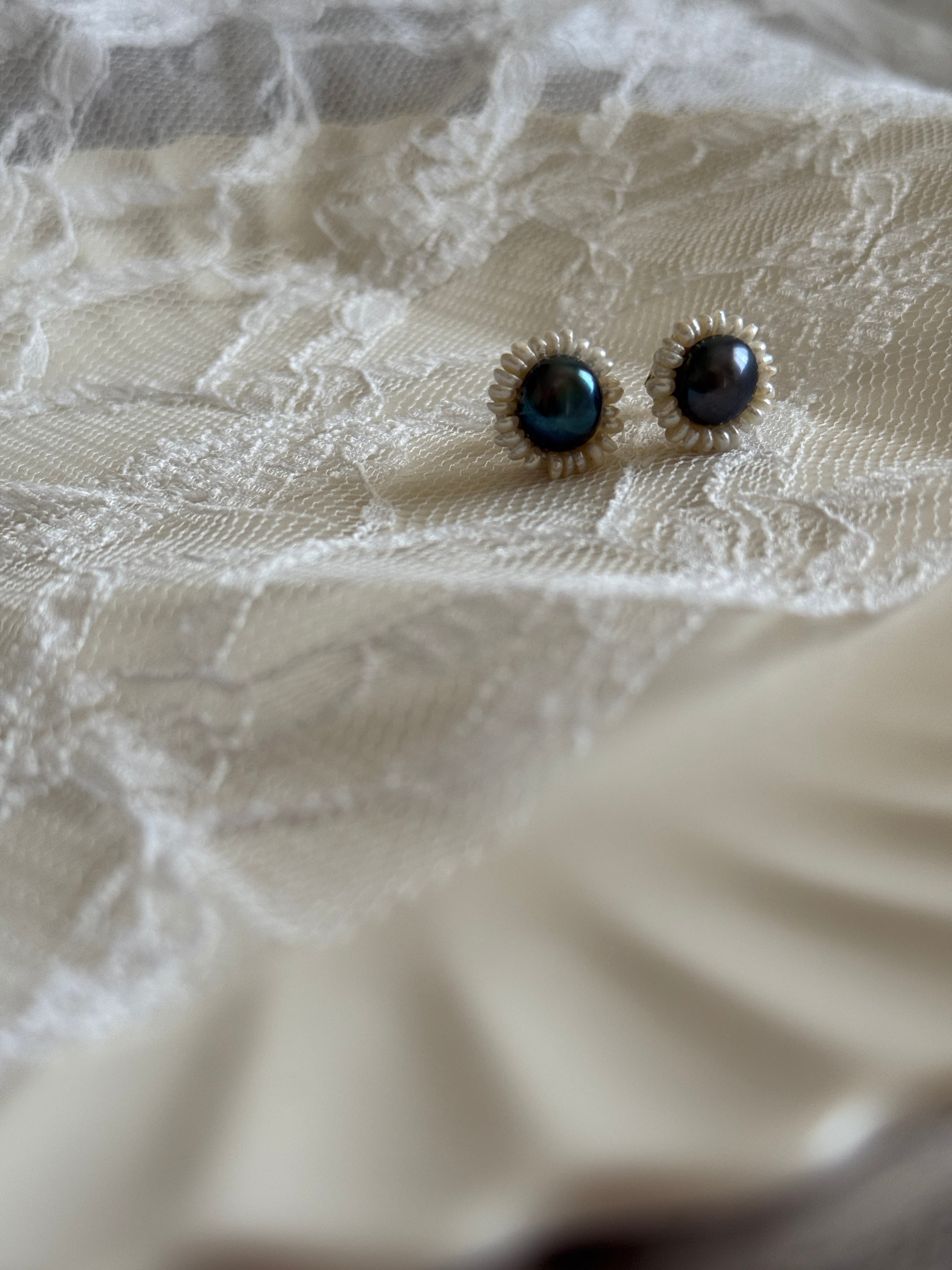 大粒のブラックパールに小粒のパールが花びらのように咲いています。 縦約1.5センチほどの大きさです。 可愛さもスマートさもあるピアスです。 ピアスのみの販売です。 アレルギー対応の素材を使用しています。 ※反応の有無に関しては個人差がございます