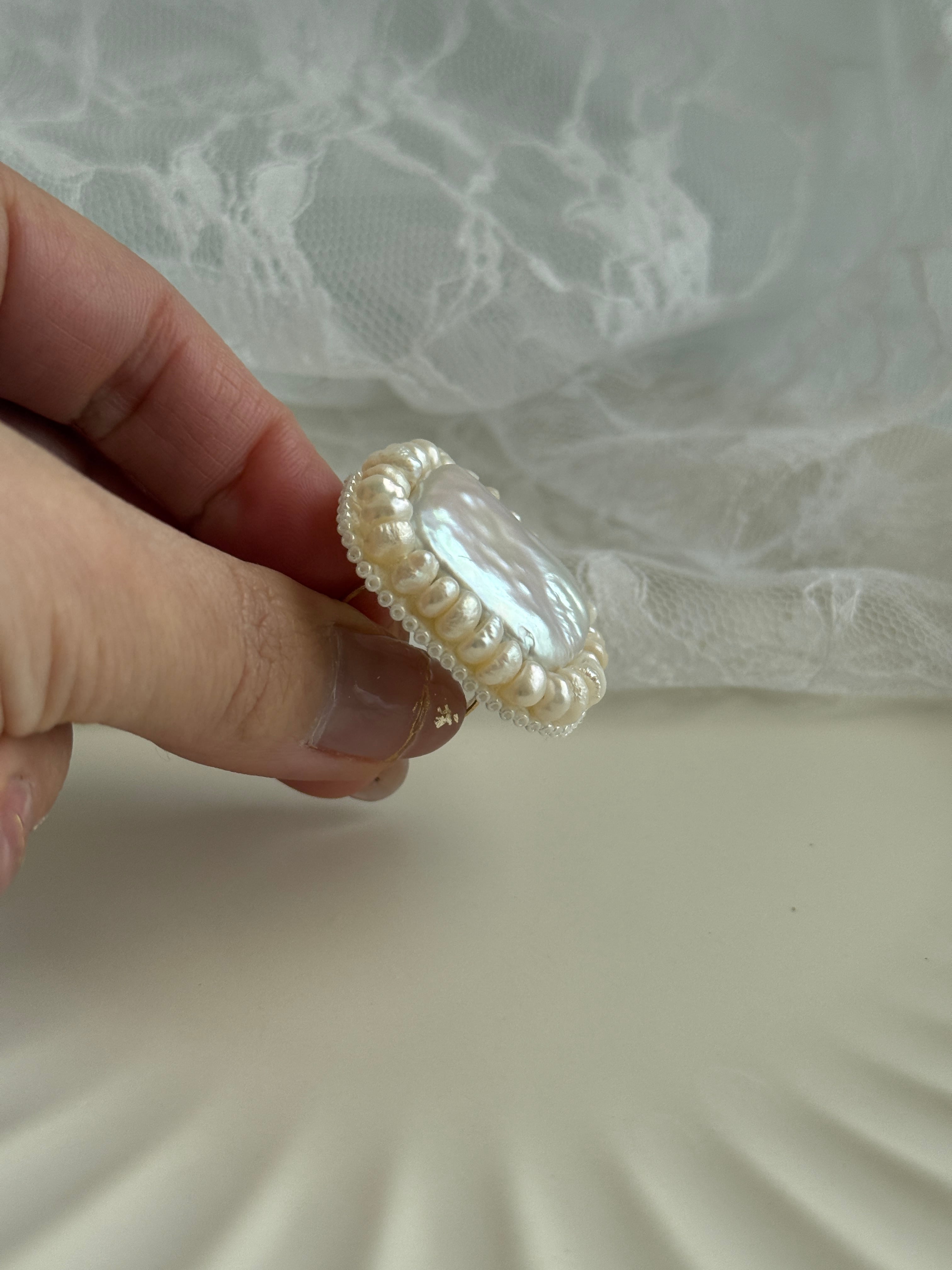大きなパールのリング。